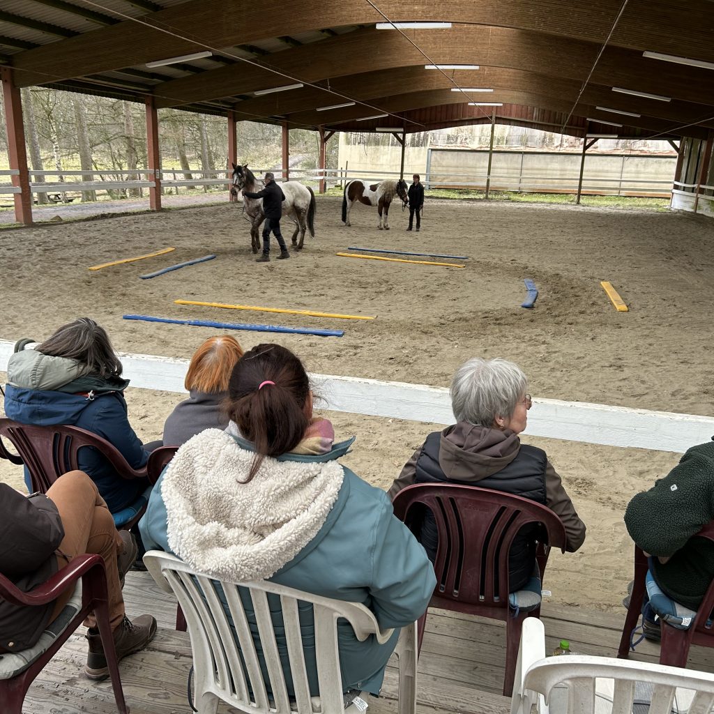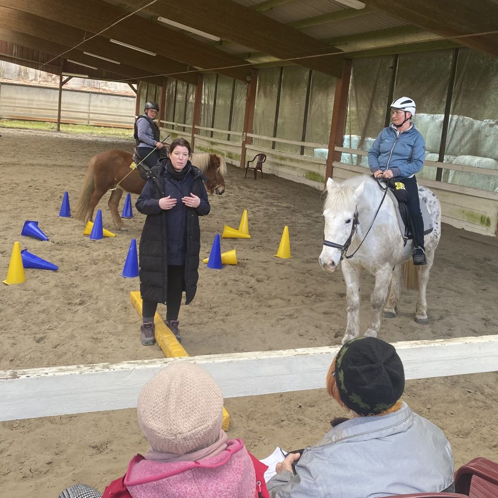 Fünf Reiterinnen und Reiter trainierten an beiden Tagen intensiv mit ihren Pferden, welche auf der Reitanlage bestens über das Wochenende untergebracht waren. Dabei waren auch mehrere Teilnehmerinnen ohne Pferd. Auch ohne eigenes Pferd waren alle aktiv eingebunden: In verschiedenen Übungen übernahmen Teilnehmende selbst die „Rolle des Pferdes“ und konnten so Abläufe, Körpersprache und Einwirkung hautnah nachempfinden – eine besonders lehrreiche Erfahrung.